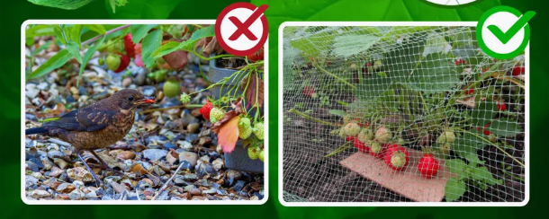 Наша міцна сітка з дрібними отворами 19х19 мм надійно захищає дерева, кущі та грядки від птахів та зберігає 99% врожаю цілим та неушкодженим